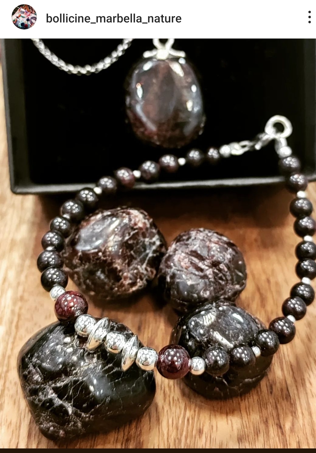 Pulsera artesanal de granate en plata.